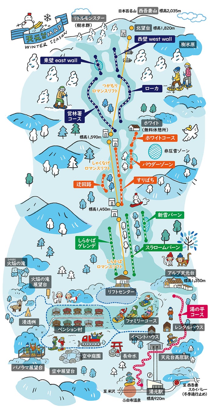 天元台高原は、日本百名山「西吾妻山」の中腹(標高1350m~1820m)に位置しているスキー場。令和2年に導入された圧雪車を活用して地域を盛り上げようと、地元白布温泉街とつくる「天元台×白布リボーン協議会」が毎年ツアーを実施している。