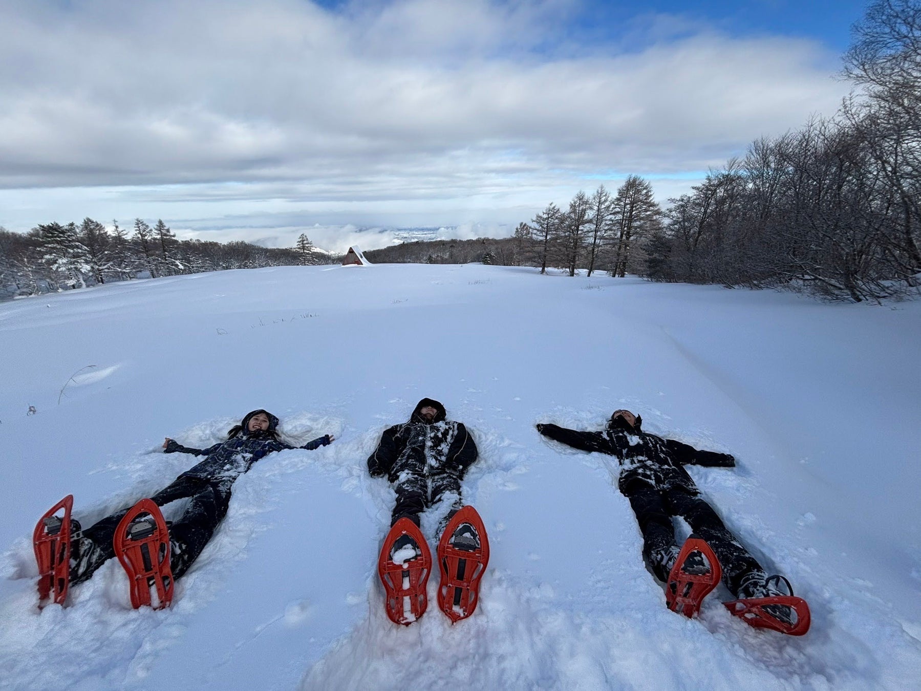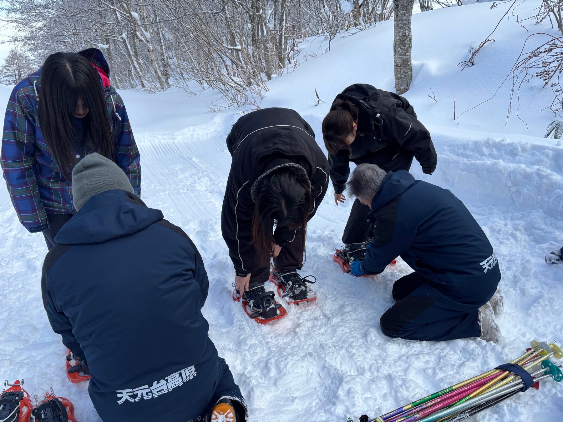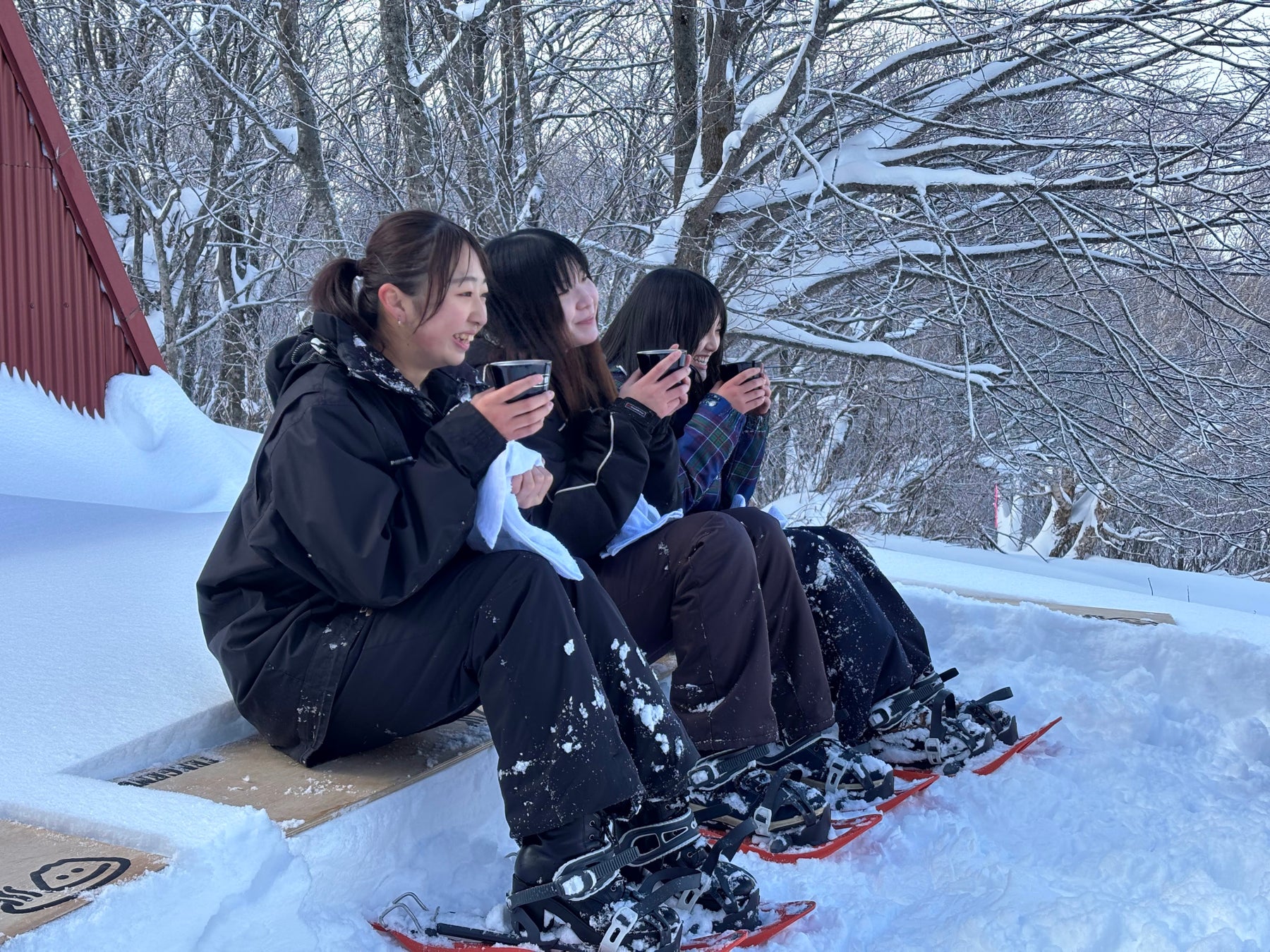 15人乗りのキャビンが搭載された圧雪車で、林道の雪を豪快にかき分けながら進むツアー。天元台ロープウェイ山頂側の高原駅近くを出発し、この企画でしか行けない雪原を目指す。道中では置賜盆地を一望できる「パノラマ展望台」や、コースのシンボルとされている「ミズナラの巨木」といったビューポイントに立ち寄る。目的地ではスノーシューを履いて雪原の散策を楽しんでから、淹れたての特製コーヒーなどを味わう。
