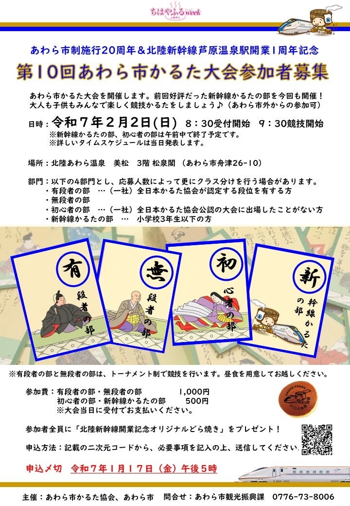 福井県あわら市 地域と文化をつなぐ 2025年2月2日開催「第10回あわら市かるた大会」参加者募集中!