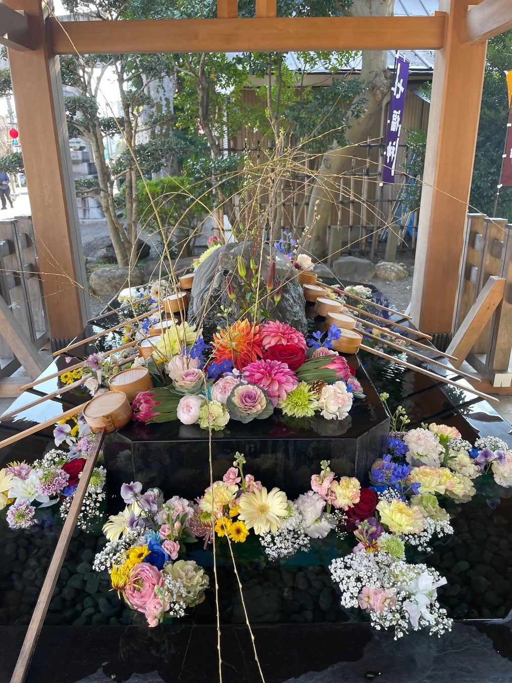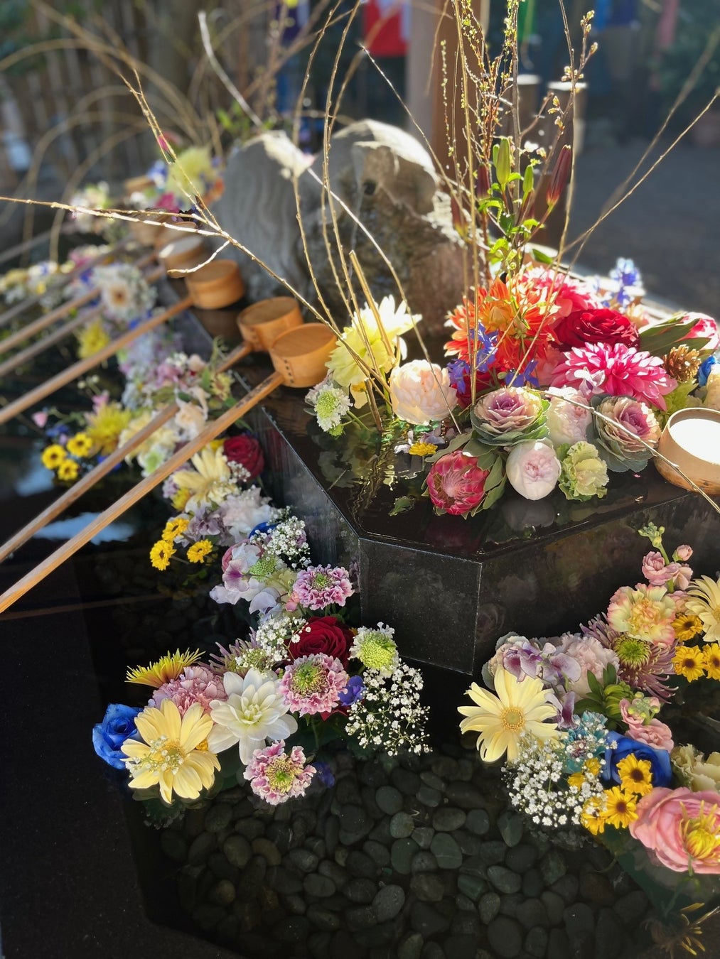 新年を彩る色とりどりの綺麗な花手水を、ぜひお楽しみください。