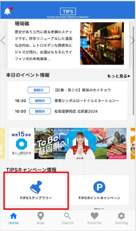 ③アプリ内から「TIPSスタンプラリー」⇒「発見!大井川ぐるっとスタンプラリー」をタップ