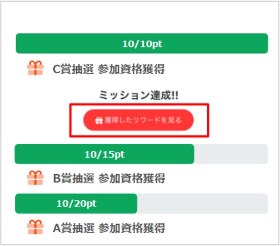 ⑤スタンプが貯まったら、応募したい条件の「獲得したリワードを見る」をタップ