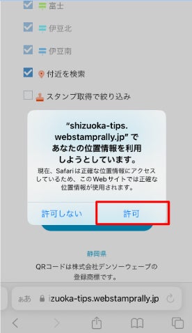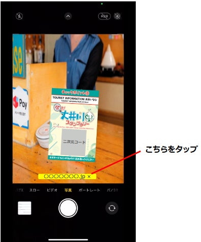 該当スポットで店頭POPにある二次元コードをカメラで読み取り、表示されたURLをタップ