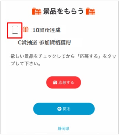 欲しい景品をチェックしてから「応募する」ボタンをタップ