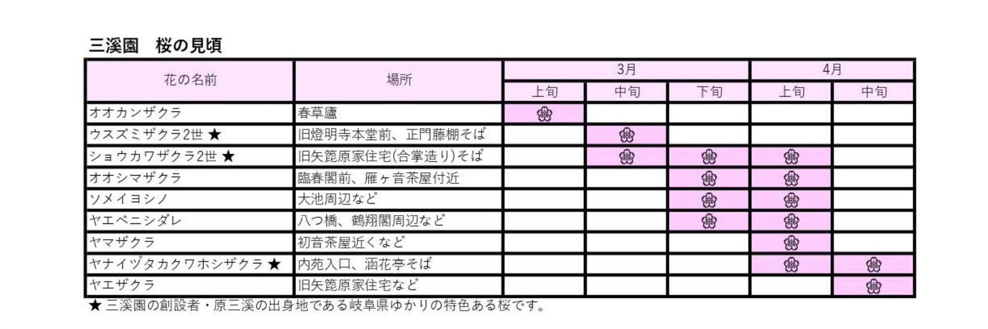 三溪園の創設者・原三溪が岐阜市柳津町の出身であることから、園内には岐阜ゆかりの桜も見られます。