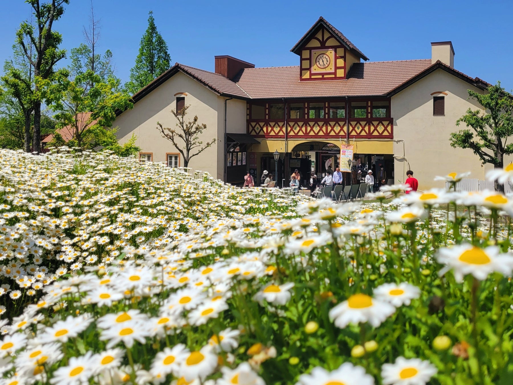入園ゲートをくぐると、そこには白い花びらと鮮やかな黄色の中心が愛らしいノースポールが咲き始めています。これから見頃を迎え、さらに華やかさを増していく4,000株のノースポールの花畑が、訪れる人々を温かく迎えてくれます。