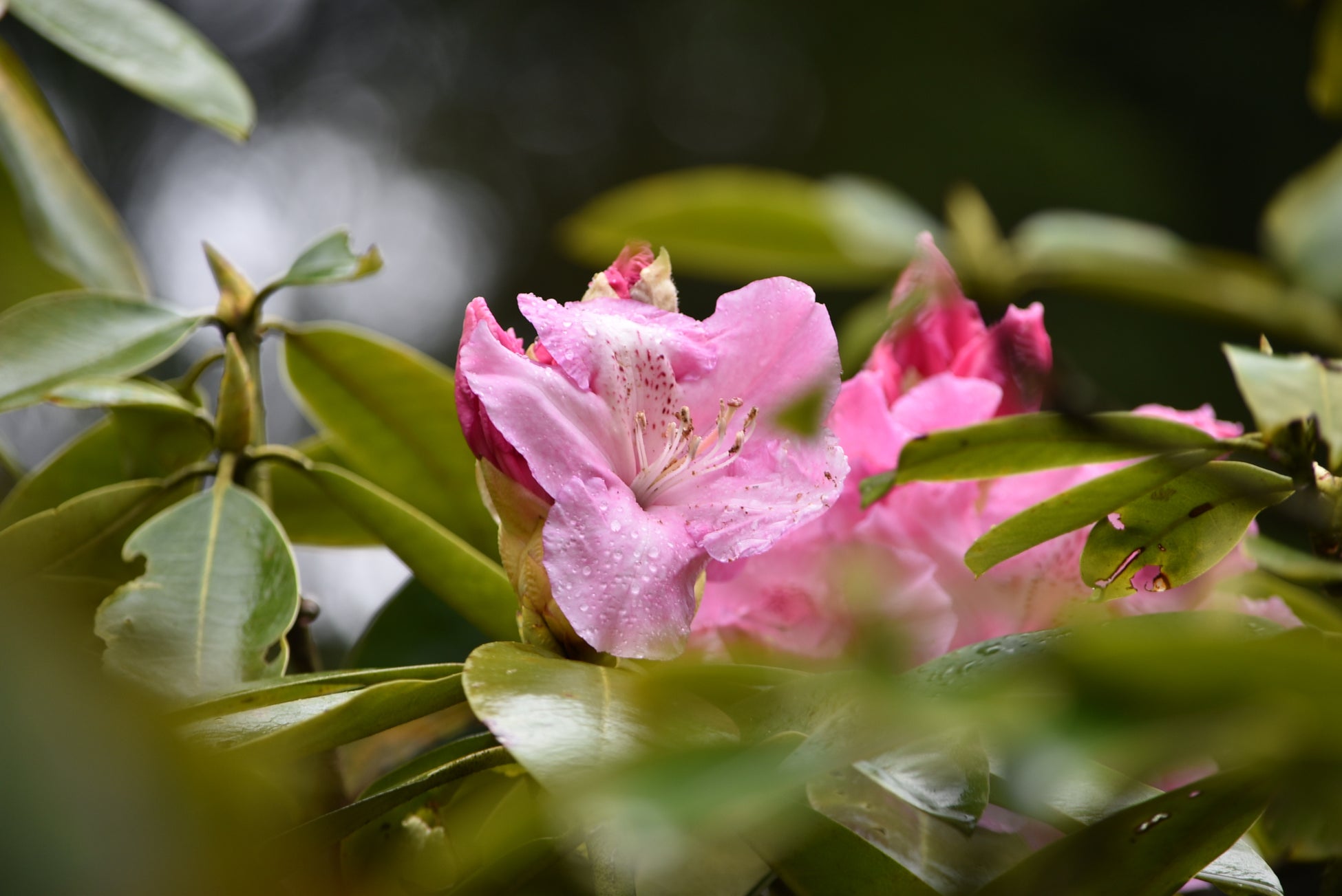 (左)「ピンク・パール(和名:天賜 てんし)」 西洋シャクナゲの一品種。ピンク色の大輪で花弁にはフリルが入る。
