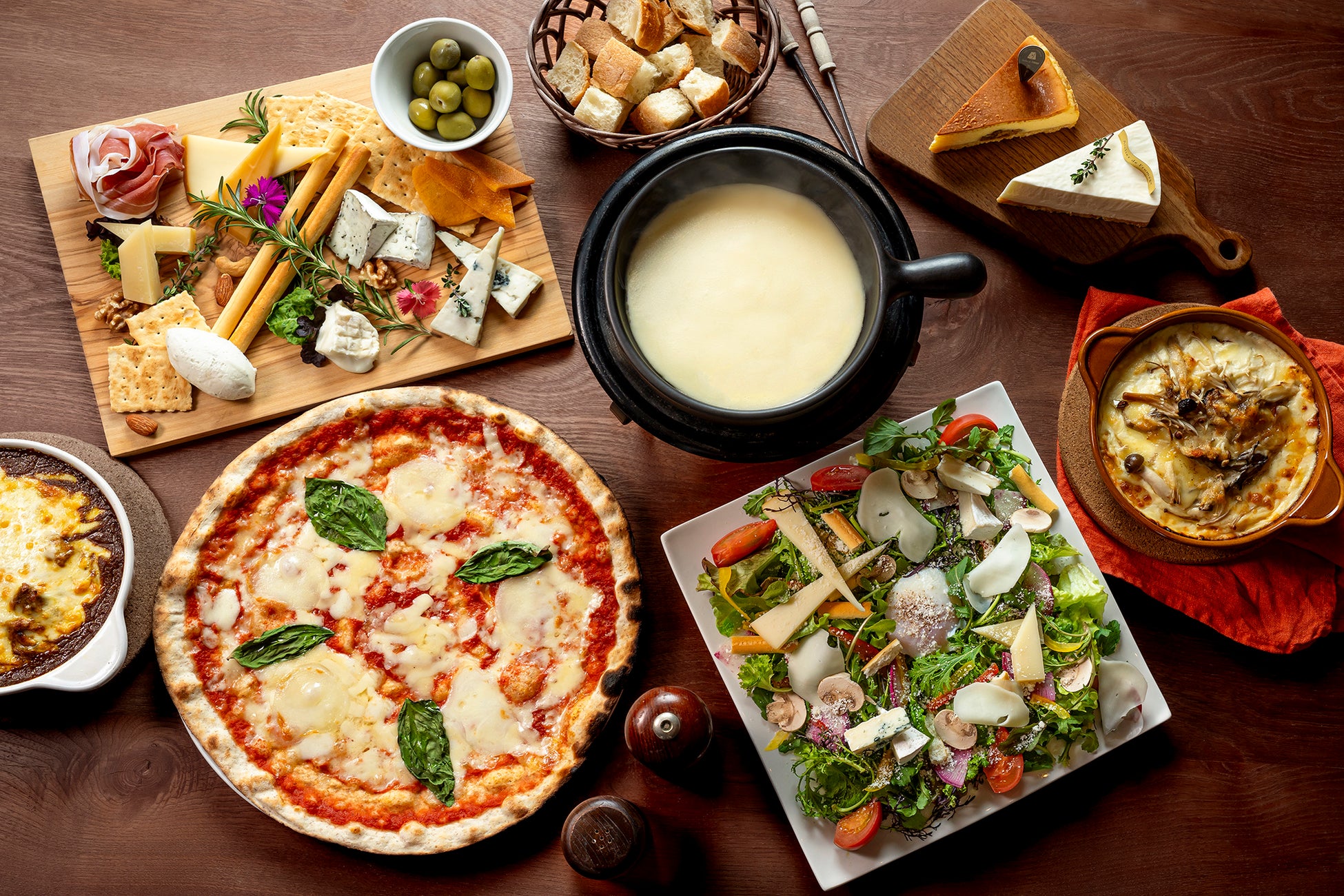 自家製硬質チーズのチーズフォンデュや3種類のチーズをトッピングできる焼きチーズカレーなど、チーズ工房ならではの特別なチーズメニューを提供いたします。