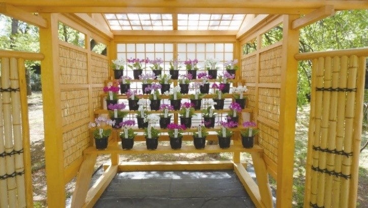 伝統園芸のさくらそう品種を、江戸時代から続く方法で展示し、