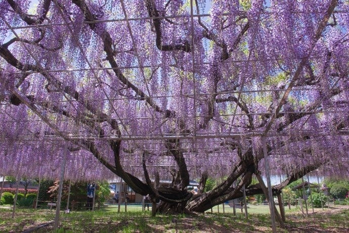 紫の花は流れ落ちる滝のようであり、花から甘い香りがするのが特徴です。
