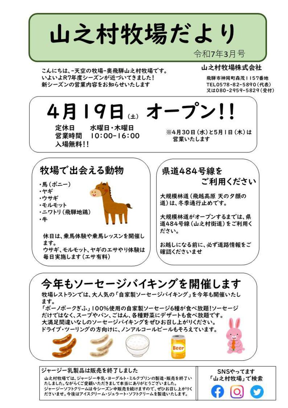 標高約1000m「天空の牧場」奥飛騨山之村牧場が4月19日(土曜日)に2025年の営業を開始します。