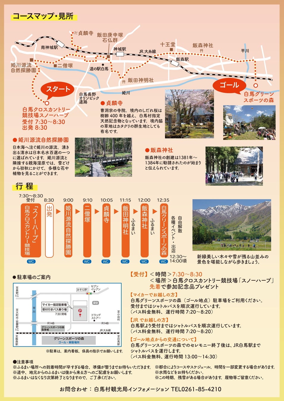 白馬グリーンスポーツの森でのセレモニー終了後は、JR白馬駅まで無料シャトルバスを運行します(運行時間13:00〜14:00)