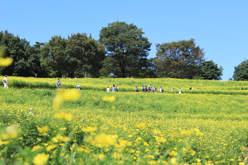 東京の国営昭和記念公園に癒されにキバナコスモス レモンブライトのお花畑を見にお散歩してみませんか?